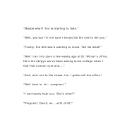 “Well I ran into Jane a few weeks ago at Dr. Winter's office. He's the ob/gyn we've been seeing since college when I had that ovarian cyst and....”