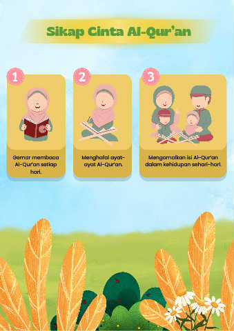 Sikap Cinta Al-Qur’an Gemar membaca Menghafal ayat- Mengamalkan isi Al-Qur’an Al-Qur’an setiap ayat Al-Qur’an. dalam kehidupan sehari-hari. hari.
