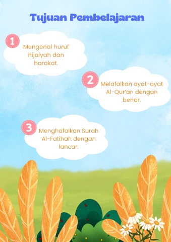 Tujuan Pembelajaran Mengenal huruf hijaiyah dan harakat. Melafalkan ayat-ayat Al-Qur’an dengan benar. Menghafalkan Surah Al-Fatihah dengan lancar.