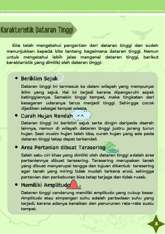 Salah satu ciri khas yang dimiliki oleh dataran tinggi adalah area