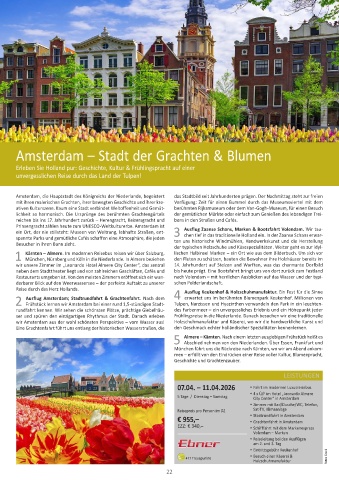 2 Frühstück lernen wir Amsterdam bei einer rund 1,5-stündigen Stadt- Tulpen, Narzissen und Hyazinthen verwandeln den Park in ein leuchten-