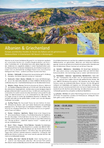 krönen nicht nur die Gipfel der wuchtigen Felsen in der eindrucksvollen Saranda – Gjirokastra – Kalambaka. Wir besichtigen Gjirokastra,