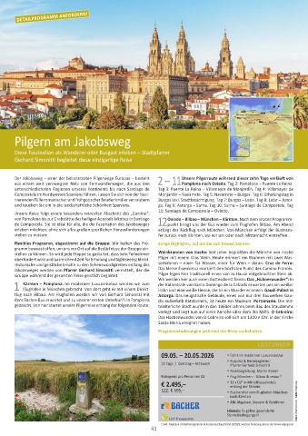 von Pamplona bis zur Grabstätte des heiligen Apostels Jakobus in Santiago Oviedo – Bilbao – München – Kärnten. Nach dem letzten Programm-