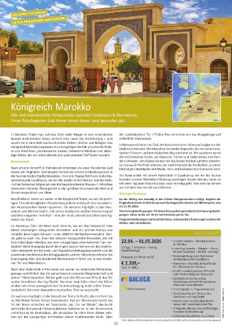 die faszinierenden Städte Marokkos. Die erste Etappe führt uns in die Küs- Die Reise endet mit einem Aufenthalt in Casablanca, wo wir die letzten
