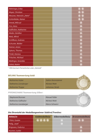 Die Ehrentafel der Medaillengewinner Südtirol/Trentino: