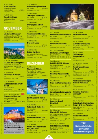 Bus p.P. € 51,– Adventzauber p.P. € 99,– Zustiegstellen: K, FE, VI