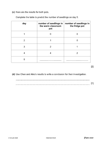 (d) Use Chen and Aiko’s results to write a conclusion for their investigation.