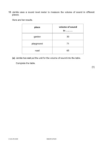 13 Jamila uses a sound level meter to measure the volume of sound in different