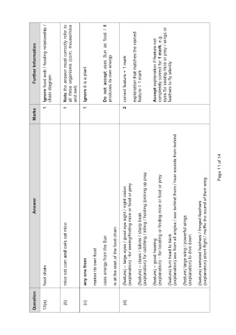 Further Information Ignore food web / feeding relationship / Note the answer must correctly refer to all three organisms (corn, mouse/mice Do not accept uses Sun as food / it explanation that matches the named Accept explanation if feature not completely correct for 1 mark, e.g. eyes for seeing mice or prey / wings or