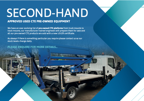 We have an ever evolving list of pre-owned CTE platforms from truck mounts to track mounts, our manufacturer trained engineers will prepare them for sale and all our pre-owned CTE products are sold with a new LOLER certificate.