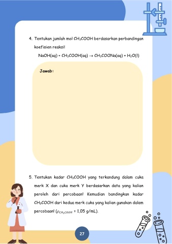 5. Tentukan kadar CH 3COOH yang terkandung dalam cuka