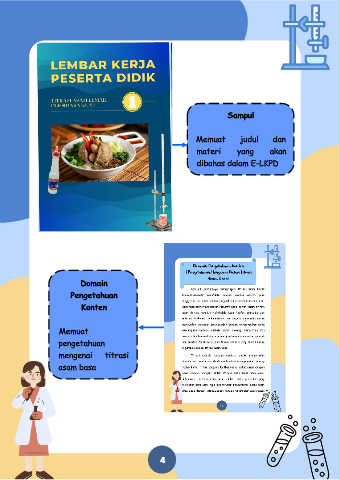 Sampul Memuat judul dan materi yang akan dibahas dalam E-LKPD Domain Pengetahuan Konten Memuat pengetahuan mengenai titrasi asam basa 4