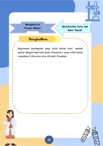 Menganalisis Proses Inkuiri Menafsirkan Data dan Bukti Ilmiah Mengkaitkan Bagaimana kesimpulan yang telah kalian buat, apakah sesuai dengan hipotesis pada fenomena 1 yang telah kalian rumuskan? (diterima atau ditolak) Jelaskan! 46