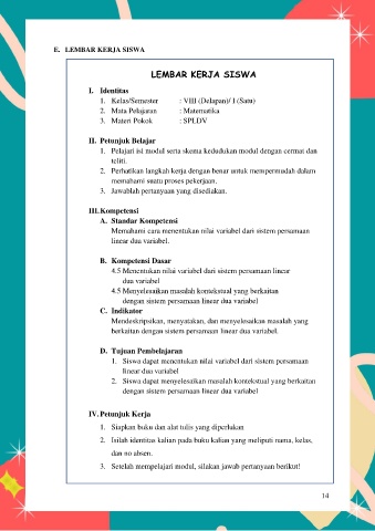 1. Siswa dapat menentukan nilai variabel dari sistem persamaan