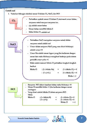 1. Tentukan bilangan oksidasi unsur Cl dalam Cl2, NaCl, dan HCl