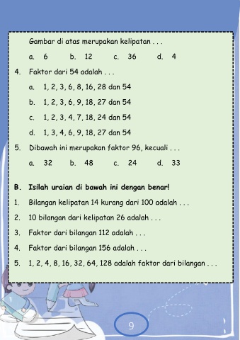 5. 1, 2, 4, 8, 16, 32, 64, 128 adalah faktor dari bilangan . . .