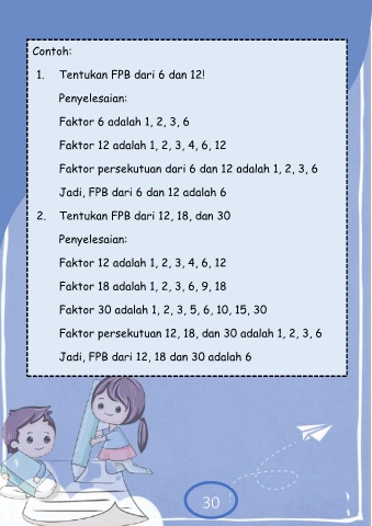 Faktor persekutuan 12, 18, dan 30 adalah 1, 2, 3, 6