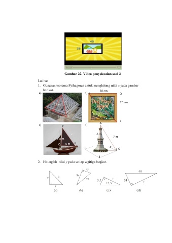 1. Gunakan teorema Pythagoras untuk menghitung nilai x pada gambar