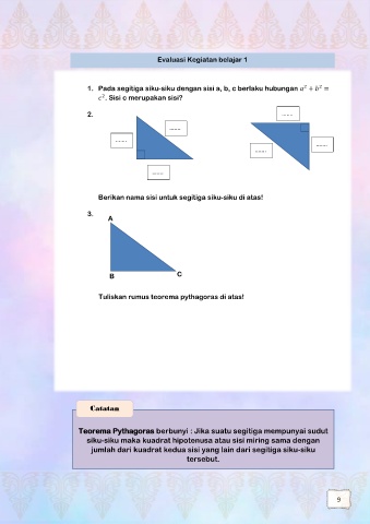 Teorema Pythagoras berbunyi : Jika suatu segitiga mempunyai sudut