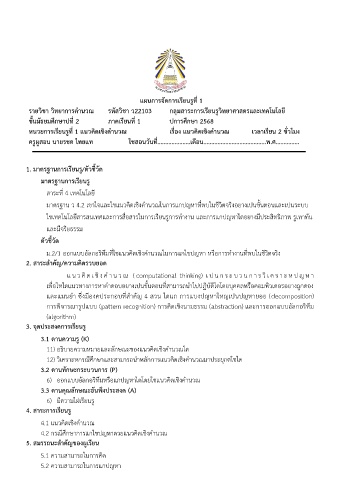 หน้วยการเรียนรู้ที่ 1 แนวคิดเชิงค านวณ เรื่อง แนวคิดเชิงค านวณ เวลาเรียน 2 ชั่วโมง
