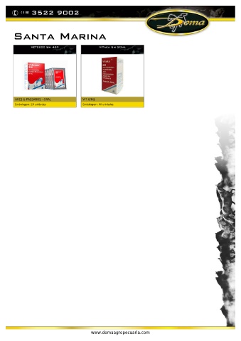 (18) 3522 9002 Santa Marina Vetococ Sm 4gr Vitaka Sm 20ml AVES & PASSAROS - ORAL VIT.K/INJ. Embalagem: 20 unidades Embalagem: 60 unidades www.domaagropecuaria.com