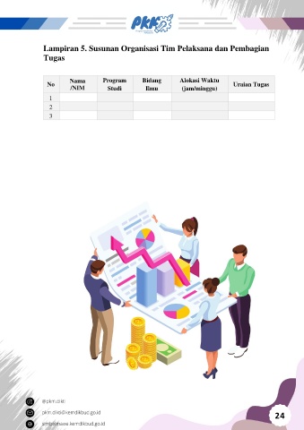 Lampiran 5. Susunan Organisasi Tim Pelaksana dan Pembagian Tugas Nama Program Bidang Alokasi Waktu No Uraian Tugas /NIM Studi Ilmu (jam/minggu) 1 2 3 24
