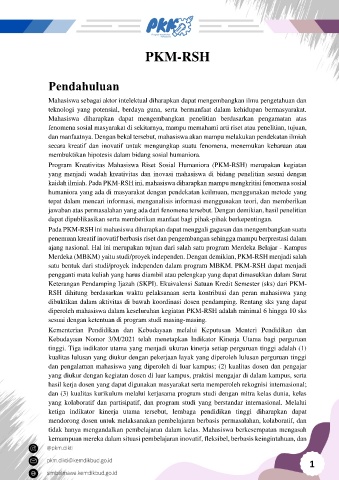 Program Kreativitas Mahasiswa Riset Sosial Humaniora (PKM-RSH) merupakan kegiatan