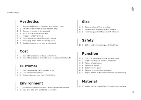 2. Lack of universal design 7. Adjust handle button functions and sounds cheap