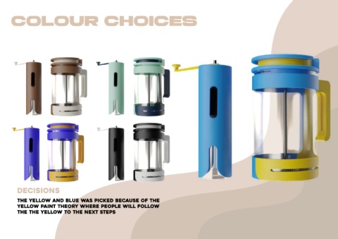 colour choices decisions the yellow and blue was picked because of the yellow paint theory where people will follow the the yellow to the next steps