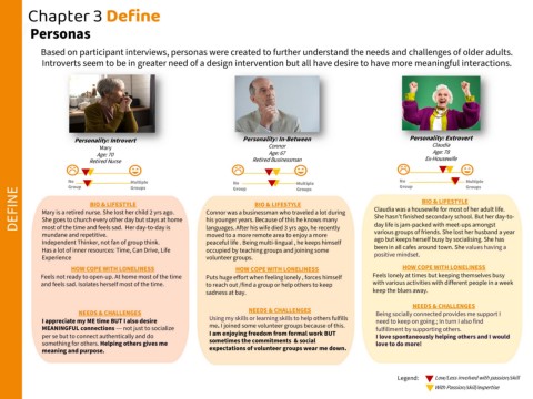 Based on participant interviews, personas were created to further understand the needs and challenges of older adults.