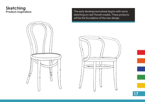 Sketching Product inspiration The early development phase begins with some sketching on real Thonet models. These products will be the foundation of the new design. 17
