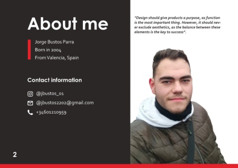 About me “Design should give products a purpose, as function