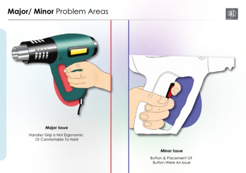Major/ Minor Problem Areas Major Issue Handle/ Grip Is Not Ergonomic Or Comfortable To Hold Minor Issue Button & Placement Of Button Were An Issue