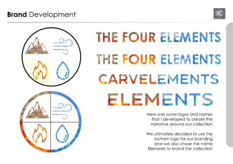Brand Development Here was some logos and names that I developed to create the narrative around our collection We ultimately decided to use the bottom logo for our branding and we also chose the name Elements to brand the collection