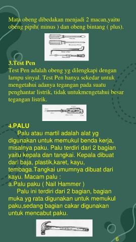 obeng pipih( minus ) dan obeng bintang ( plus).