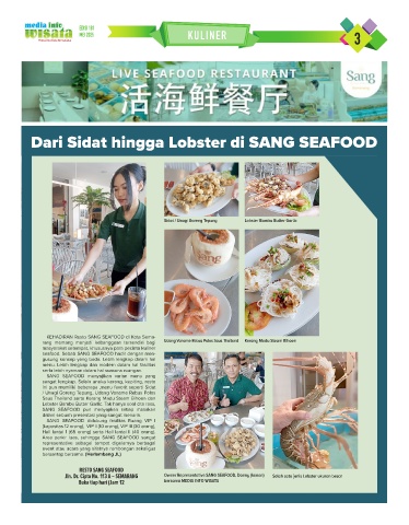 Jln. Dr. Cipto No. 113 A – SEMARANG Owner Representative SANG SEAFOOD, Donny (kanan) Salah satu jenis Lobster ukuran besar