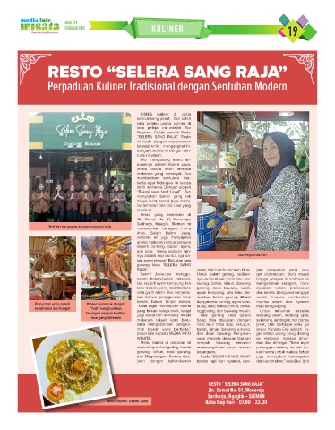 dan Magelangan. Semua disa- Resto “SELERA SANG RAJA” juga merasakan kehangatan