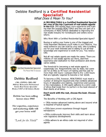 Debbie Redford To become a CRS, however, REALTORS® must meet a