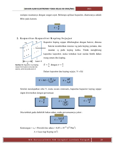 Gambar 12. Kapasitor dua keping = dengan =