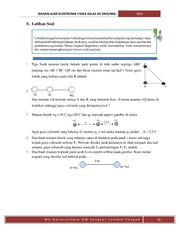 1. Tiga buah muatan listrik berada pada posisi di titik sudut segitiga ABC