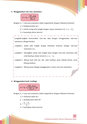 dengan: = rata-rata sementara (nilai tengah kelas dengan frekuensi terbesar)