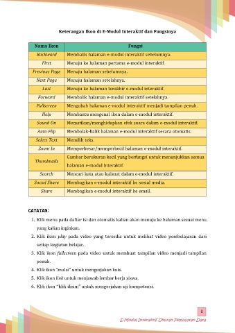 Keterangan Ikon di E-Modul Interaktif dan Fungsinya
