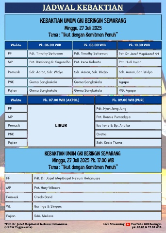 Minggu, 27 Juli 2025 Pk. 17.00 WIB