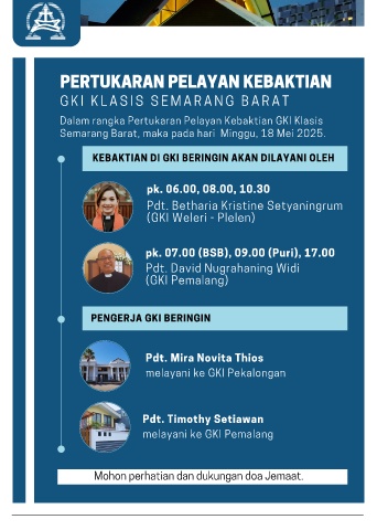 KEBAKTIAN DI GKI BERINGIN AKAN DILAYANI OLEH