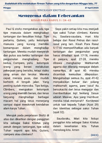orang yang memilih berani, dan terus memberitakan Injil tentang Yesus
