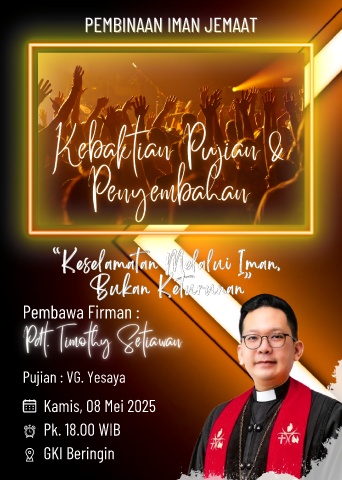 PEMBINAAN IMAN JEMAAT PEMBINAAN IMAN JEMAAT “Keselamatan Melalui Iman, “ K e s e l a m a t a n M e l a l u i I m a n , u K t e r a n n ” u u B Bukan Keturunan” n a k Pembawa Firman : Pujian : VG. Yesaya Kamis, 08 Mei 2025 Pk. 18.00 WIB GKI Beringin