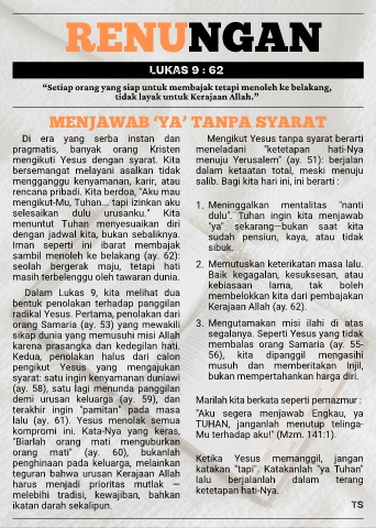 mengikuti Yesus dengan syarat. Kita menuju Yerusalem" (ay. 51): berjalan