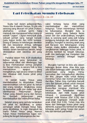 Yesus tiba di daerah Gerasa. Di situ ada membebaskan dan memulihkan