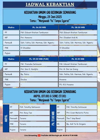 Live Streaming YouTube GKI Beringin pk. 06.00 & 17.00 WIB