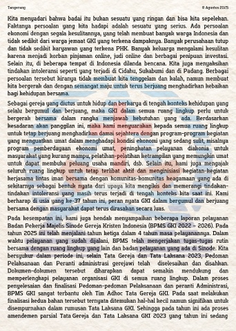 tahun 2025 ini telah menjalani tahun ketiga dalam 4 tahun masa pelayanannya. Dalam